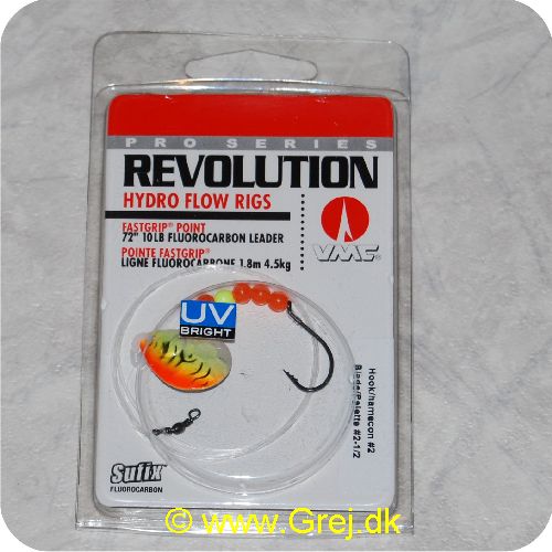Revolution Hydro Flow Rigs - Fluorcarbon line 1.8m - 4.5 kg - Krogstr. 4 - VMC kroge - Orange/gul/hvid blad UV bright med perler