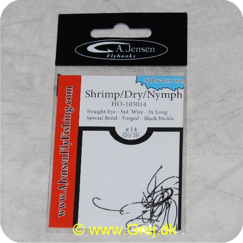 Shrimp/Dry/Nymph - Lige øje - Special bøjet - Sort - 20 stk - Str. 14
