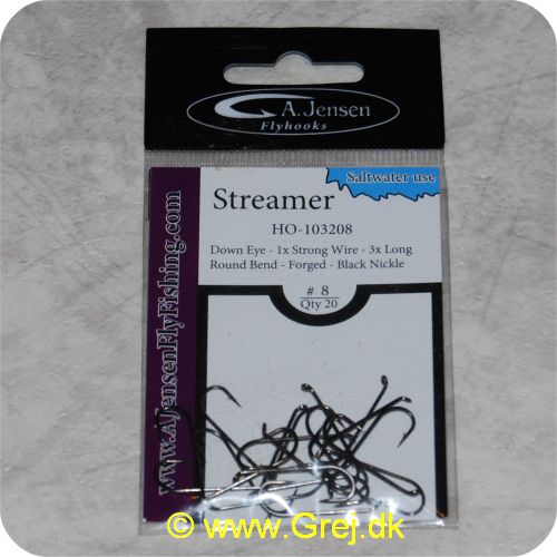 Streamer kroge str. 8 - Down eye - 1x Strong Wire - 3x Long Round Bend - Messing farvet