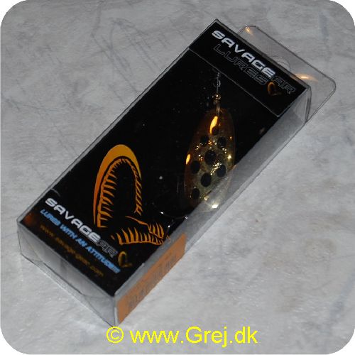 Beskrivelse:Savagear Lures Caviar Spinner str. 3 - 9,5g - guld m/sorte prikker - Langkastende tungstens krop - Japansk trekrog - Immediate rotation