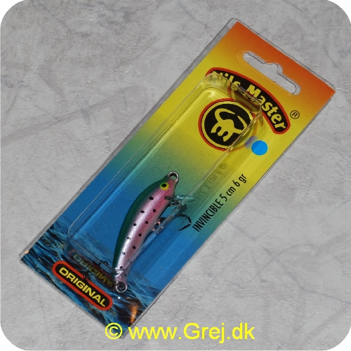 Beskrivelse:Master Wobler Invincible - 5 cm - 6 gram - Farve 863 Blågrøn/lyserød/hvid med sorte prikker - Denne wobler er som alle Nils Master Wobler testet og kvalitetskontrolleret samt finjusteret i hånden og tank-testet før de pakkes. - Dette er en af de gode klassiker som er ideel til at fange drømmefisken.