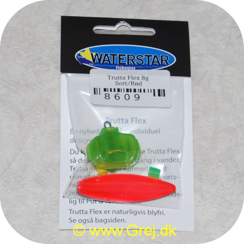 Beskrivelse:Trutta Flex - 8 gram - Sort/Rød - Med Krogkappe En nyhed indenfor individuel designet fiskegrej. Du kan simpelthen BøJE Trutta Flex så den får den perfekte gang i vandet. Trutta Flex bliver dermed totalt uimodståelig for de kendte sportsfisk som f.eks. laks. havørred og hornfisk. Suveræn til Put & Take.