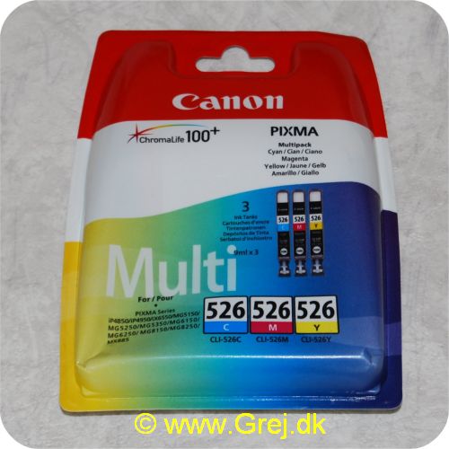 Beskrivelse:Canon blæk patroner farve 526 - Gul/Cyan/Magenta - CLI-526CMY - Combo pakke