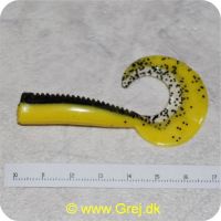 Small twisterlike tails with a small scoop at the end generating massive tail action! Simply fish them on a hook or on a jighead; Trout go wild!!!